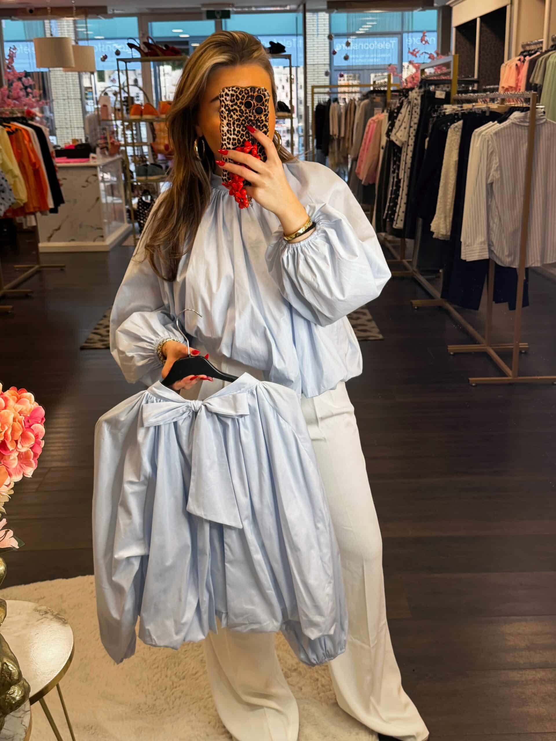 De blouse heeft een open rug!